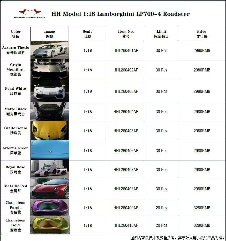 HH Model 1/18 Lamborghini Aventador LP700-4 Roadster - New product now available for pre-order!