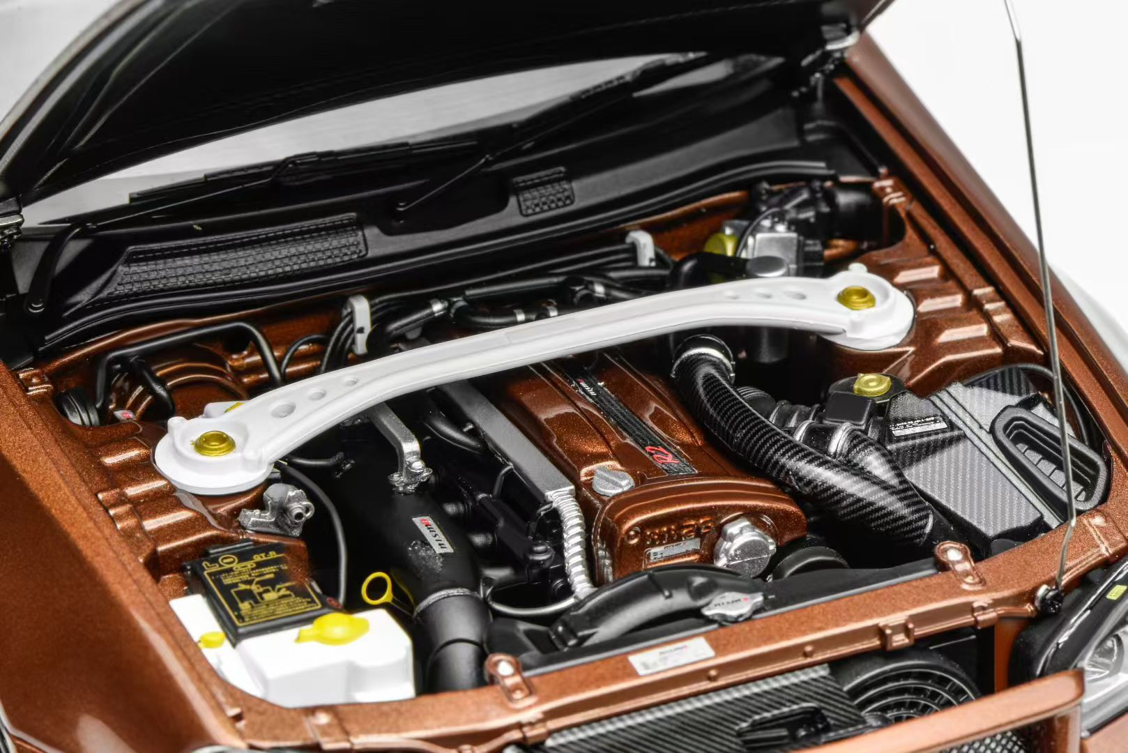 Pre-production stock is here! MOTORHELIX 1/18 Alloy Model Nissan Skyline GT-R (R34) CUSTOMIZED VERSION is now available for purchase! This model features a metallic bronze finish and is limited to only 799 units. The retail price is $300/€253 Retail, 30 to book.